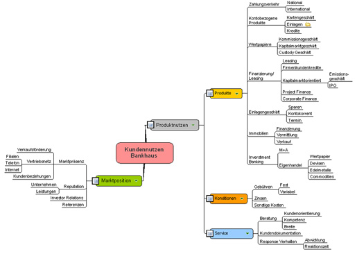 Alle Einflussgrößen auf den Kundennutzen eines Bankhauses wurden in einer Struktur kaufentscheidender Kriterien erfasst. Diese ist ein präzises Bild der Marktbedürfnisse einer Zielgruppe.