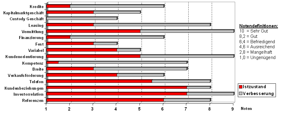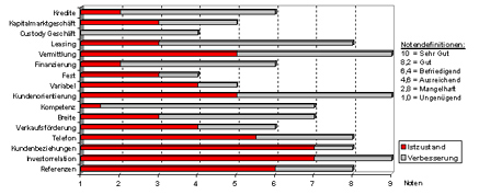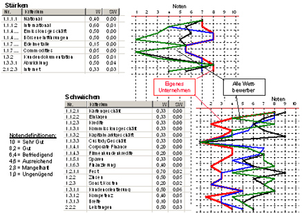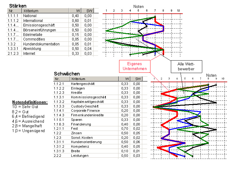 Abb. 4: Stärken-Schwächenprofil des eigenen Bankhauses: Mit dem Stärkenprofil wird eine Verkaufsargumentation entwickelt. Das Schwächenprofil dient der Entwicklung von Verbesserungsmaßnahmen