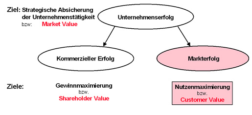 Ein Unternehmenserfolg hat die zwei - an sich konfliktären - Komponenten "kommerzieller Erfolg" und "Markterfolg". Während der kommerzielle Erfolg im wesentlichen über die unterneh-mensinternen Prozesse gesteuert wird, wird der Markterfolg alleine von dem vom Kunden tatsächlich wahrgenommenen Nutzen, dem Kundennutzen, gesteuert. Den Kunden interessieren die unternehmensinternen Prozesse nur in zweiter Linie. Er möchte mit einem Kauf zu besten Konditionen ein Problem lösen. Für belastbare Markterfolgsanalysen stehen wenig zufriedenstellende Untersuchungsmethoden zur Verfügung.