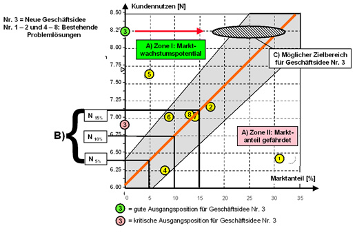 - B. Welche Kundennutzenwerte müssen bei bestimmten Zielmarktanteilen erreicht werden?