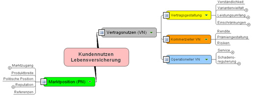 Alle Einflussgrößen auf den Kundennutzen einer Lebensversicherung wurden wie folgt erfasst: