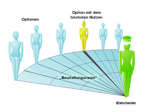Das Ausgangsszenarium: Ein Entscheider entscheidet sich stets für die Option mit dem von ihm tatsächlich wahrgenommenen höchsten Nutzen.