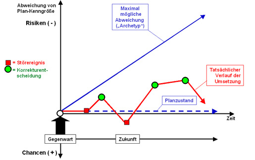 • Das Verfolgen ("Monitoring") von Änderungen in ursprünglichen Entscheidungssituationen und die schnelle Entwicklung entsprechend erweiterter Maßnahmenpakete.